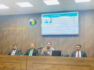 The College of Nursing at Baghdad University participated in a workshop on “Cybersecurity Data Protection”, organized by the Department of Media and Government Communication in cooperation with the National Security Agency. The college was represented by Assistant Professor Mustafa Wajeeh Hussein, head of the college’s media unit, at Mahdi Hantoush Hall at the university.