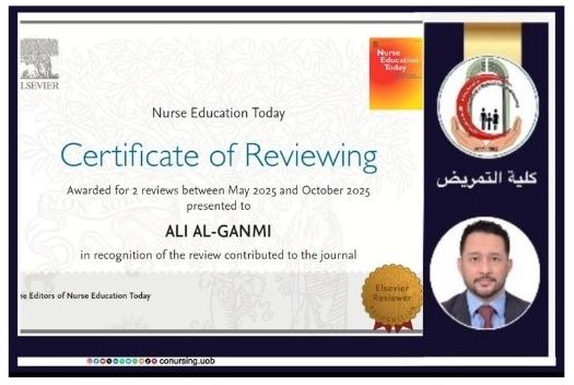 This achievement emphasizes the quality of education and scientific research at the Faculty of Nursing at Baghdad University, and contributes to enhancing its reputation at the local and international levels. Dr. Ali Hussein Alak received certificates of appreciation from the journal as an active member of the research evaluation committees