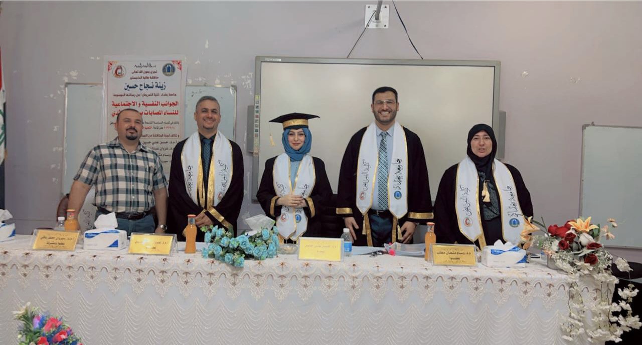 The Faculty of Nursing at Baghdad University discussed the master thesis tagged) Psychosocial Aspects among Women with Breast Cancer (for the student zenia najah hussien.