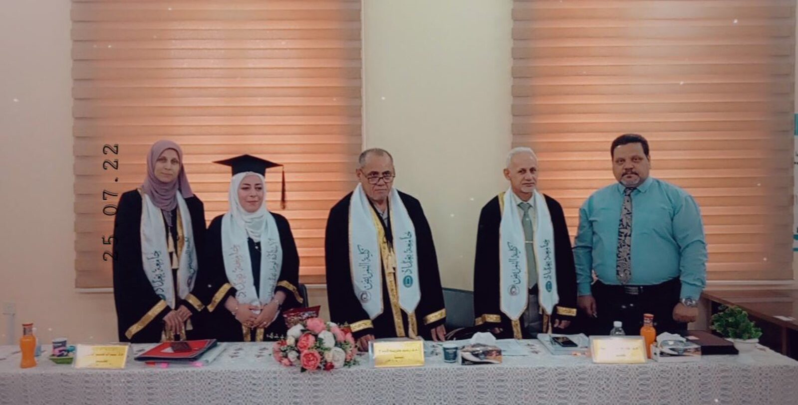 The Faculty of Nursing at Baghdad University discussed the doctoral thesis tagged )Effectiveness of a health Educational Program on Pregnant Women’s Knowledge and Attitudes about Coronavirus Prevention in Al- Najaf City (for the student Nour Abdel Kazem Dikhl.
