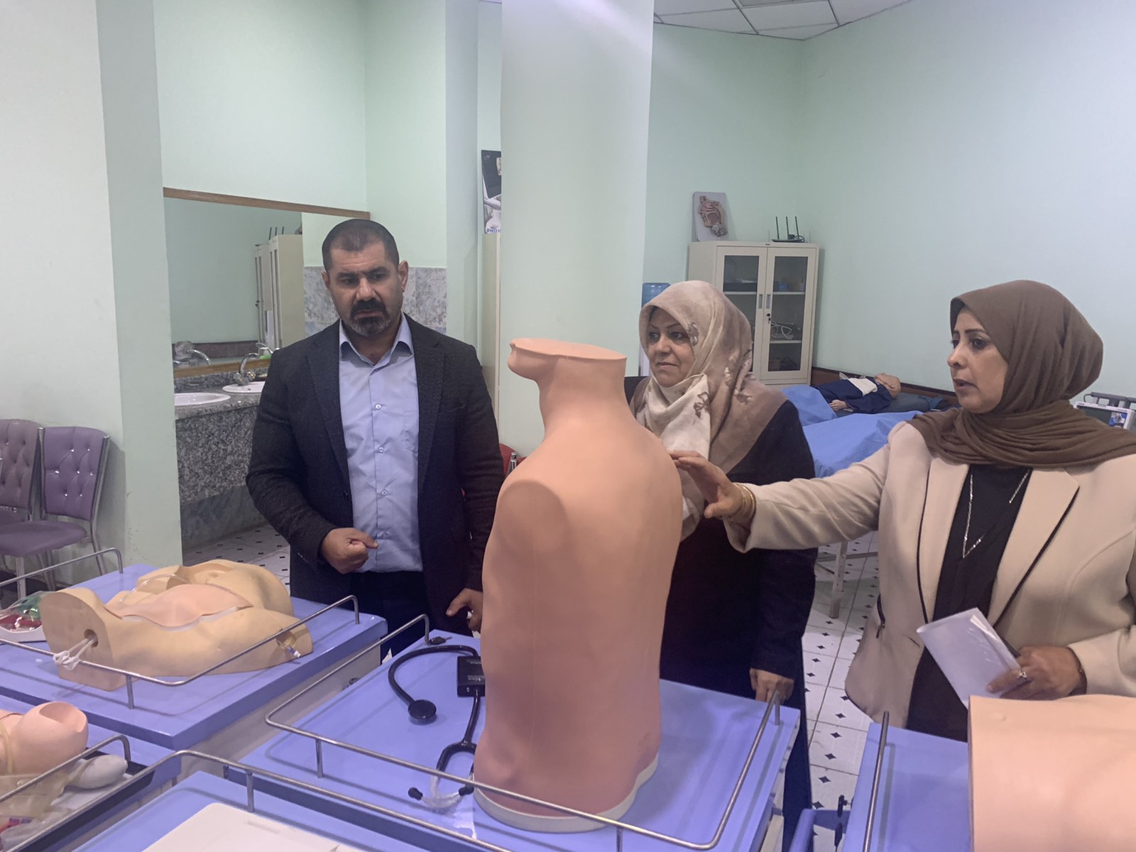 The visit included a field tour of the scientific halls and laboratories equipped with simulation dolls and modern medical technologies in clinical training for students of critical cases, which contribute to the development of knowledge and skills of students, how to deal with patients in critical and emergency cases, and provide appropriate medical and nursing assistance to save the patient’s life. At the end of the visit, Mr. Dean, Professor Dr. Huda Baqer Hassn and the faculty me expressed their thanks and appreciation to the Director of the Regional Training Center for Emergency Medicine Services professors of emergency medicine For their unremitting efforts in providing information and scientific and clinical expertise to students of the Higher Diploma in Emergency Medicine and Critical Care Nursing and arming them with science, knowledge and clinical skills to provide the best care for critically ill patients.